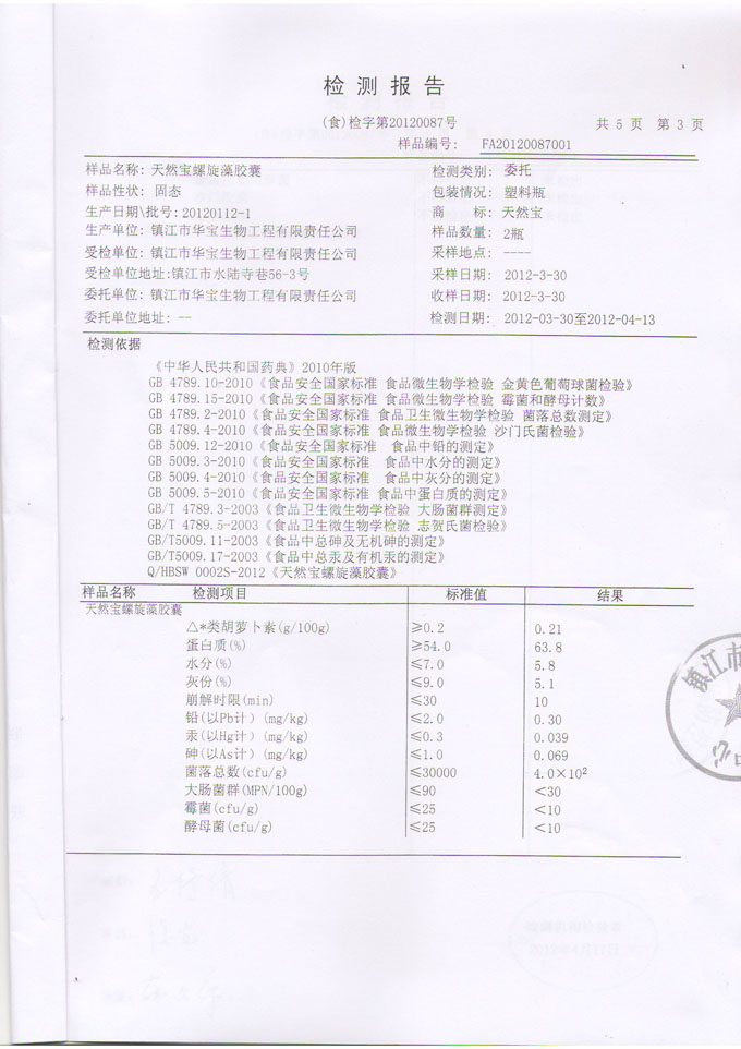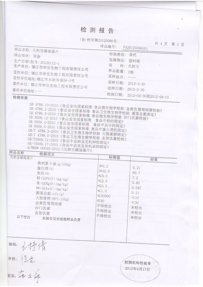 當(dāng)前位置>>新聞動態(tài)| 天然寶螺旋藻檢測報(bào)告 | ||